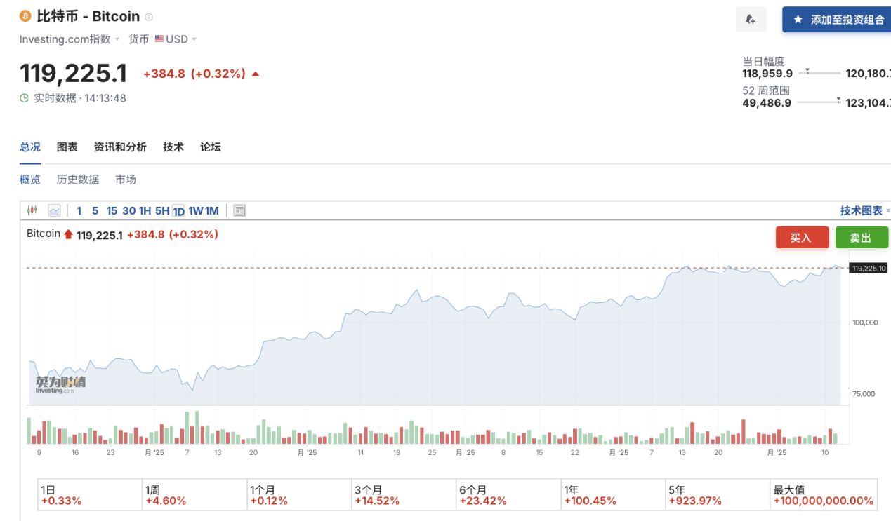 以比特币为例,今年4月初比特币启动了新一轮上涨行情,价格从8万美元左右一路上涨,到近日已经突破12万美元大关,触及12.2万美元关口。虽然在冲击新高后遭遇获利了结,出现一波回调,但截至发稿最新价格依然在11.9万美元左右徘徊。