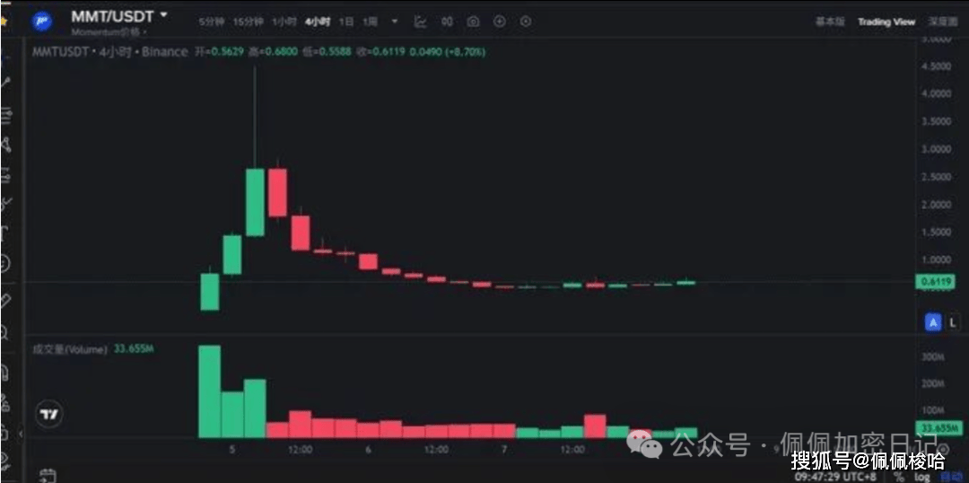 MMT的质地还是蛮不错的,上线前的热度很高,上线后暴涨也很吸引眼球; 2)做市商和庄家联合拉抬现货价格,通过合约爆空后爆多,赚得盆满钵满,他们会继续利用这个香饽饽来来回收割韭菜和大户;高位一大堆套牢盘,需在底部反复震荡吸筹,所以,耐心等待底部构筑完毕。