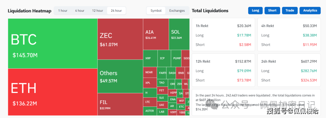 最近24小时,全球共有 242463 人被爆仓 ,爆仓总金额为 $6.06亿!周五周六早盘对至周一晚间已经定了市场基调,周末山寨乱飞,可以寻找日K站稳MA5/MA10的曾经热点鼻子,给我怼进去,破位ma5/ma10就离场,不破位就拿一拿给点耐心,等待大爆拉一波!在本周市场普跌个币逆势爆拉的鼻子规避一下不要操作,比如隐私系、GIGGLE/AIA诸如此类!