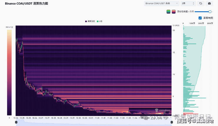 AIA拉完应该到COAI吧,这个币的庄比AIA还要妖,上次从0.2拉到20u 简直离谱,看了清算价更是离谱,从2-20堆积了大量流动性,下方已经清无可清,上方这块肉倒是很肥,大的清算集中在5-6,其次就是20,不过有一部分很大概率是庄的仓位。