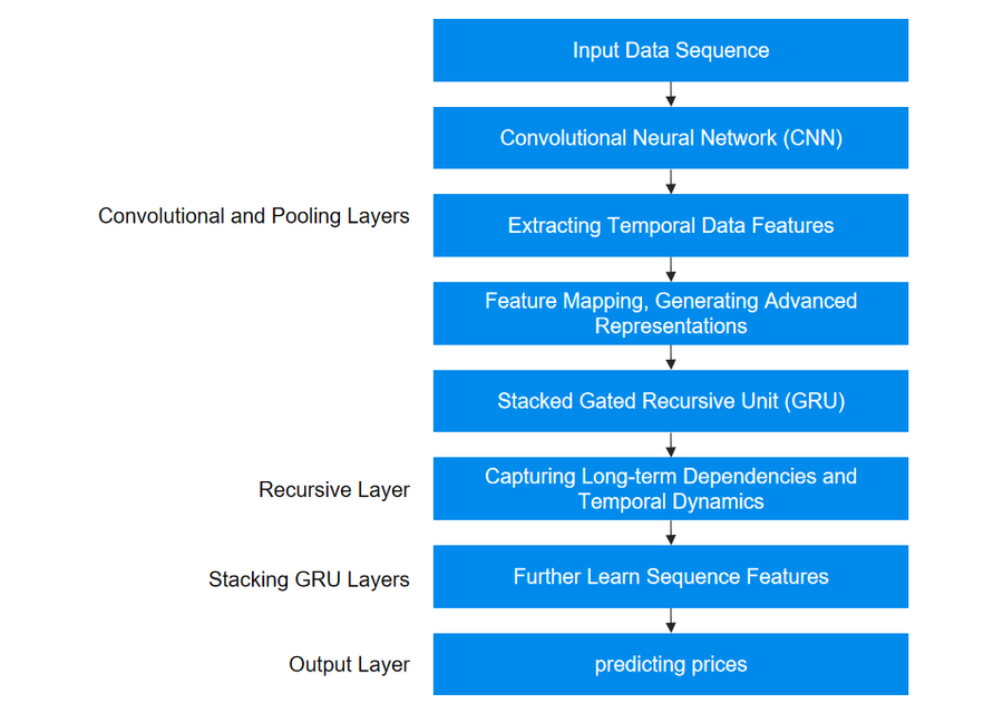 通过这种技术逻辑,基于卷积神经网络和堆叠门控递归单元的加密货币预测模型能够更有效地学习和理解加密货币市场的复杂动态,从而提高了预测的准确性和可靠性。