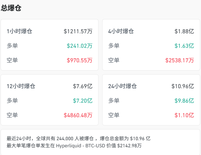 加密货币全线重挫,多只重要品种跌超6%,截至北京时间10月31日6:24,全市场共24.4万人被爆仓,爆仓金额近11亿美元。