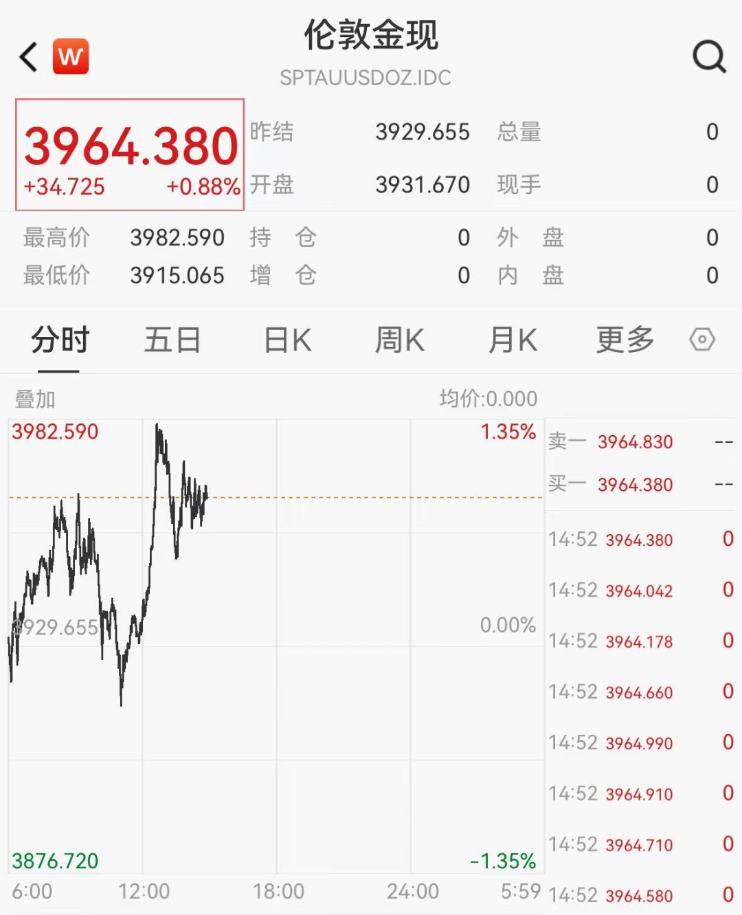国际金价方面,现货黄金短线美元/盎司,截至发稿,最新报3964.38美元/盎司,日内涨幅收窄至0.88%。