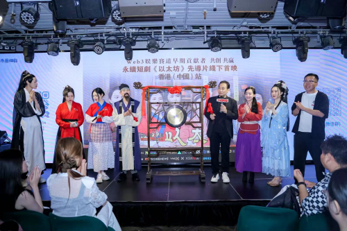 首映礼的嘉宾和身着古装的主创人员,现场举行了RWA上市的敲钟仪式。据悉,这是娱乐赛道RWA的第一钟。伴随着钟声响起。Web3娱乐赛道也将被正式开启,相信越来越多的内容制作者,会加入进来,以出海短剧的热点引领,娱乐综艺,线息息相关的优质内容也会逐步进入公众的视野,成为下一代去中心化,内容即价值的商业变现的创新。
