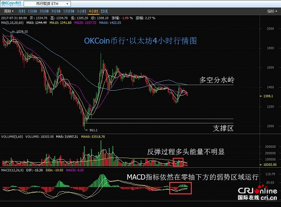 OKCoin币行分析师称,日内来看,4小时级别,均线)处于粘合偏空的状态运行,并且M60再次对价格产生压制作用,MACD指标零轴下方弱势区域运行,本级别偏空格局不改;1小时级别,价格昨日反弹并未有效上破1410一线的多空分水岭,当前价格在回落中有放量现象。