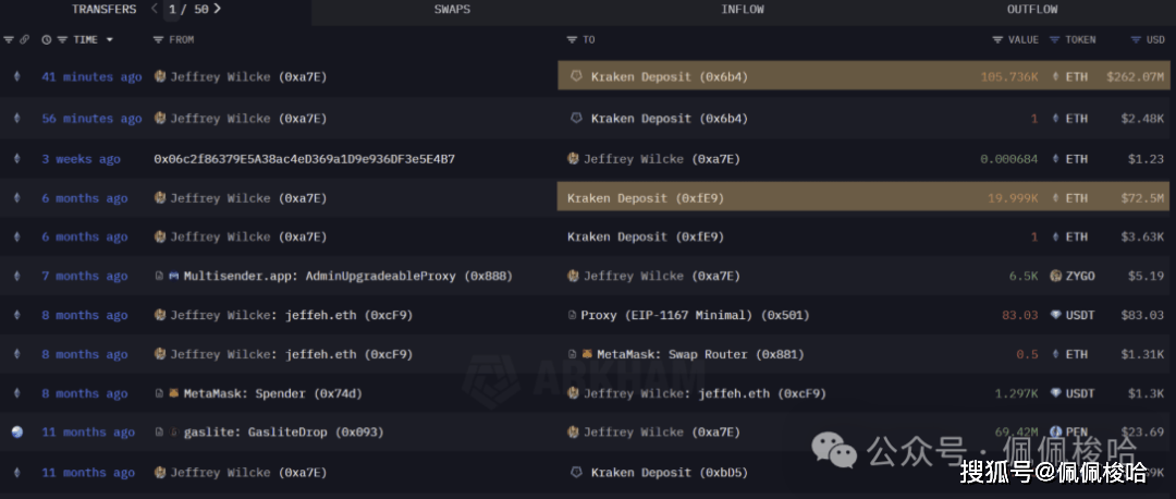 首先就是以太坊惊天大瓜。以太坊联合创始人Jeffrey向交易所转了2.6亿美元的ETH,基本上是把所有的仓位都卖了,说是跑路都不为过。