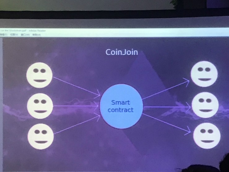 第一步,在明确了有哪些人涉及到交易之后,将Coin Join智能合约发送给这些参与方;第二步,在智能合约中,每个人都需明确交易对象和具体指定一个交易地址,来发送货币; 而第三步,即在执行环节,需要得到所有的参与者的同意后才会执行。只有有一个人不同意,这个进程就会被终止。如果顺利,智能合约会最终被发往到在第一步中各参与方的地址中。