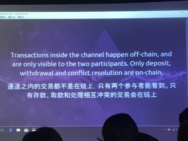 通道之内的交易都发生在链下,只有参与交易的双方才能看到。并且,只有那些在存款、取款和解决途径出现冲突的交易才会被放到链上。什么是出现冲突的解决途径?继续以Alice和Bob的例子来说明,假如发起交易的Alice一方无法辨认或者不承认Bob的签名,那么智能合约就会认为这笔交易不被交易双方所接受而将其提交至链上待双方追溯处理。
