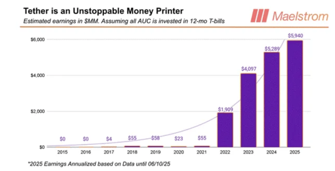 稳定币叙事的独特之处在于:对于传统金融(TradFi)人士而言,它拥有最为明确、庞大的可服务市场总规模(TAM)。Tether 已经证明:一个仅负责保管用户资金并实现链上转账功能的 “ 链上银行 “,完全可以成为人均利润最高的金融机构。然而我们必须冷静看待 — — 稳定币叙事之所以吸引投资人,并非因为其金融模型足够先进,而是因为它的盈利模式过于 “ 粗暴 “:高利息、无支出、少监管。