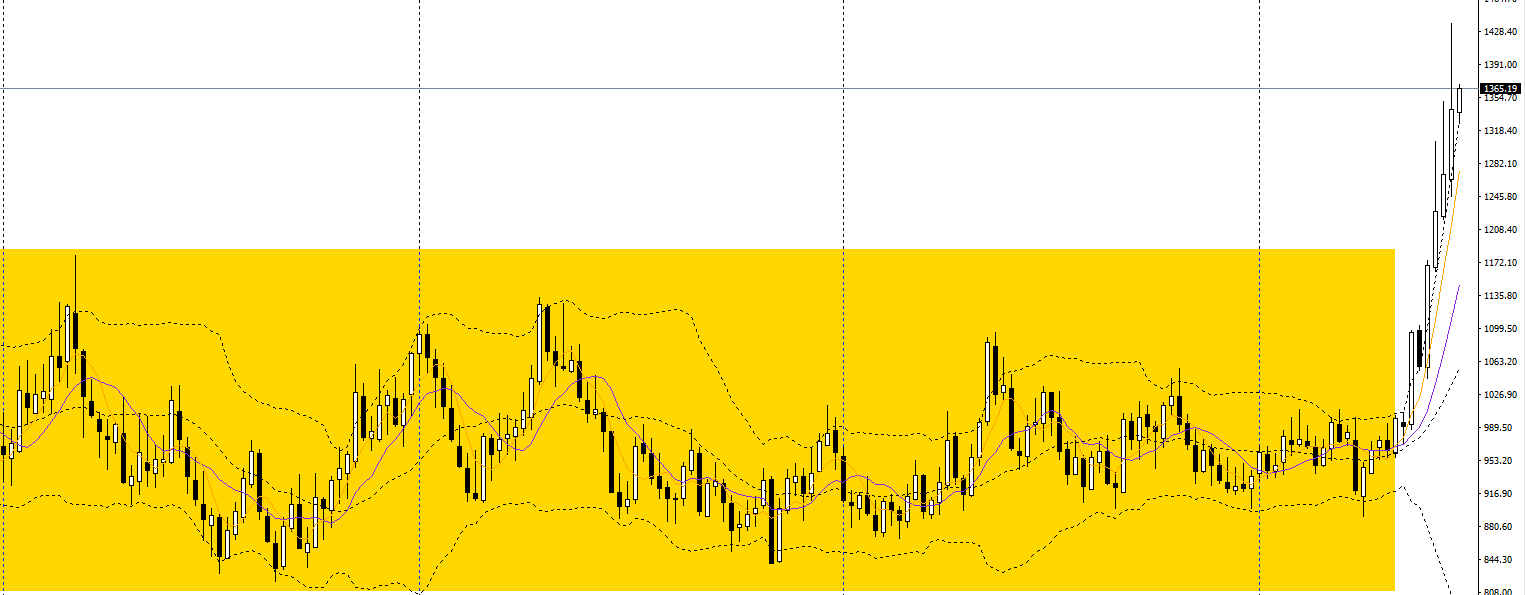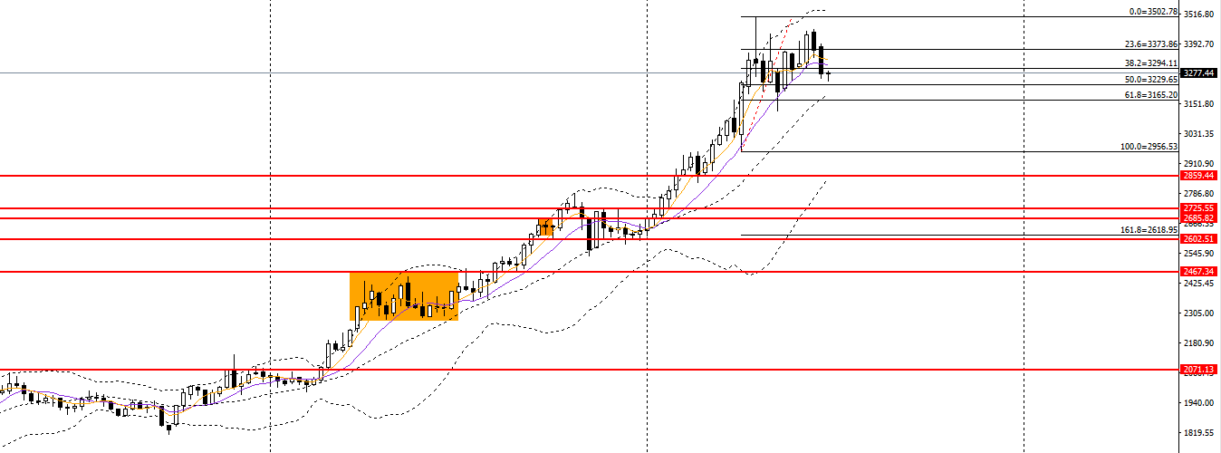 铂金上周收流星阳线,立于周线布林上轨之上,RSI到达超买区,波段预计将延续上行。日线刺破前高,日线RSI位于高位,短线上方可延续低多思路。