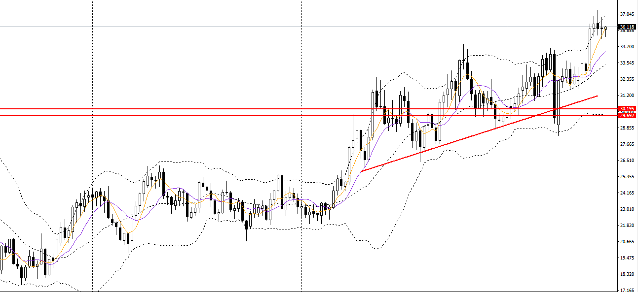 欧美上周收看涨吞没大阳柱,突破3年多以来新高,波段有望进一步破高。周五小幅收涨,日线一线存在一定支撑,如回踩企稳可做多,如下破支撑,多单建议离场,可暂时观望。