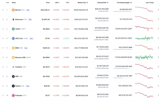 币圈“大血洗”比特币以太坊较历史高位跌超七