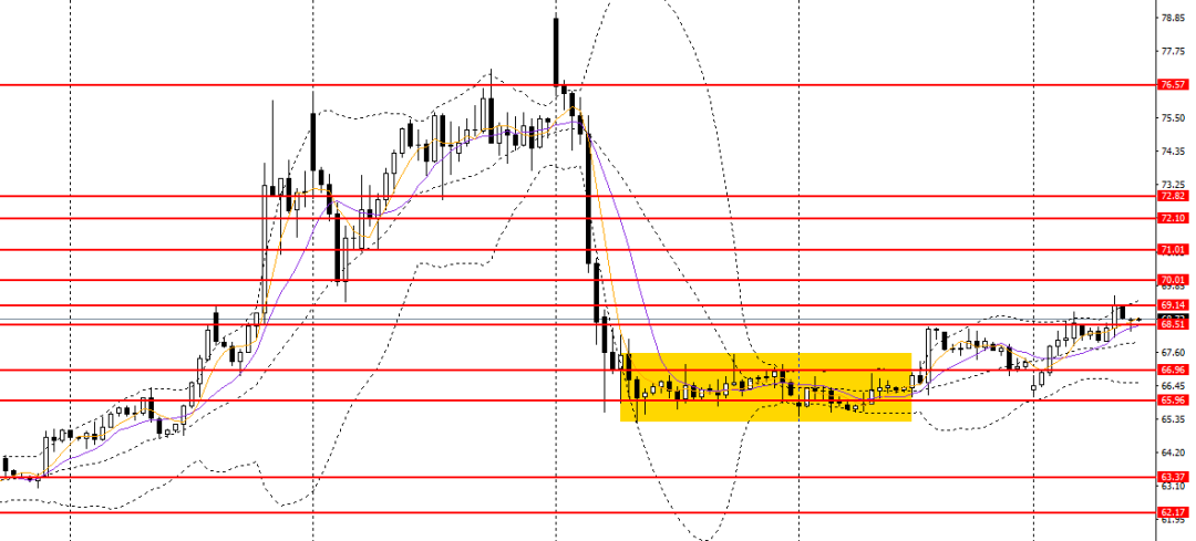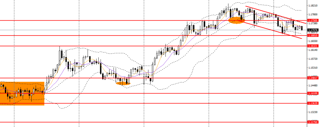 欧美小幅反弹,今日亚盘重新拐头下行,4小时处于下行通道内,短线趋势进一步转弱,空单仍可持有,如下破1.1680,可看空至1.1630。