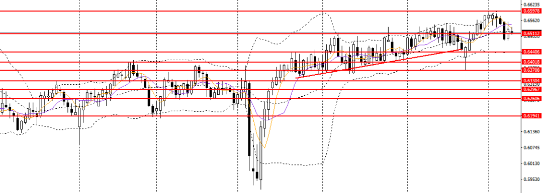 澳美收流星阳线一带面临强压,空单仍可持有,后市有望下探0.65,0.6480。