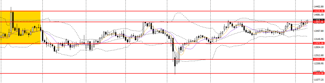 A50微幅走高,今日亚盘延续上行,4小时站上13800一线阻力,短线趋势再度转多,多单仍可持有,可继续上看至14000。