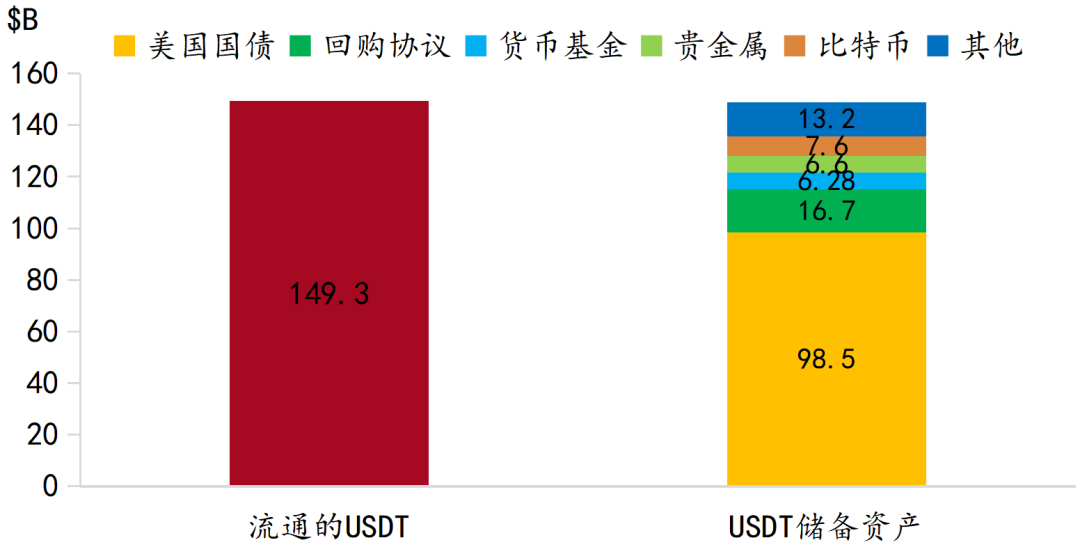 USDT和USDC在储备资产的构成、管理模式及透明度方面存在显著差异。USDT的储备资产组合呈现多元化特征,除现金和美国国债外,还包括贵金属、加密资产及企业贷款等。尽管Tether公司声称其储备略高于流通市值以保障赎回需求,但较高的非流动性资产比例,以及信息披露不足,引发市场对其储备资产真实性的质疑。