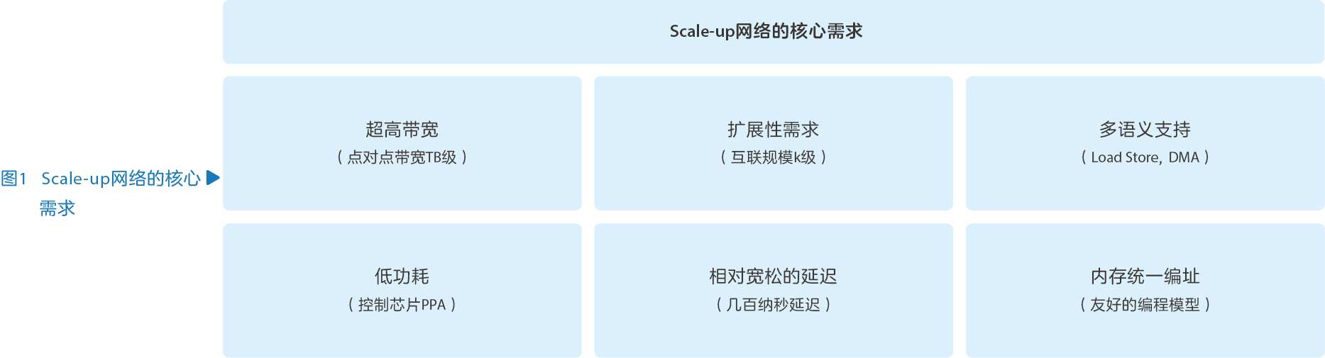 Scale-up网络本身是“总线”和“网络”技术在特定场景融合应用的产物,其综合了两者的特点,并融入了自身的核心诉求(见图1)。