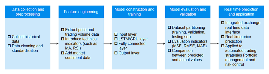 微云全息(NASDAQ: HOLO)的一种基于长短期记忆(LSTM)和门控循环单元(GRU)的区块链货币价格预测模型。首先,需要从多个加密货币交易所收集大量的历史数据,包括开盘价、收盘价、最高价、最低价和交易量等。这些数据构成了预测模型的输入。为了提高数据的质量,会对原始数据进行清洗和预处理,包括去除缺失值、平滑异常值以及标准化处理。