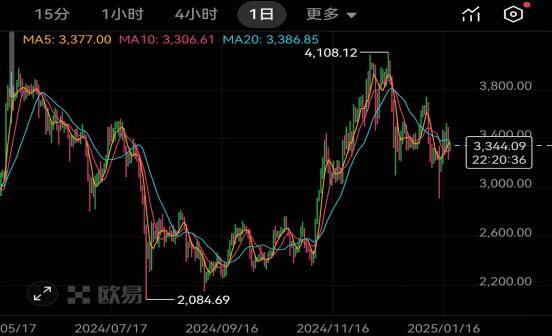 回顾以太坊ETH历史价格走势图,我们可以发现其价格经历了多次大幅波动。从提供的历史价格走势图中可以看到,在2024年7月17日左右,以太坊ETH价格曾一度下跌至2,084.69,这一时期可能受到了市场整体回调、技术问题或其他负面因素的影响。然而,随后价格开始逐步回升,并在2024年11月16日左右达到了一个相对较高的点位4,108.12,这一上涨过程可能与以太坊生态系统的发展、市场情绪的改善以及资金的流入等因素密切相关。
