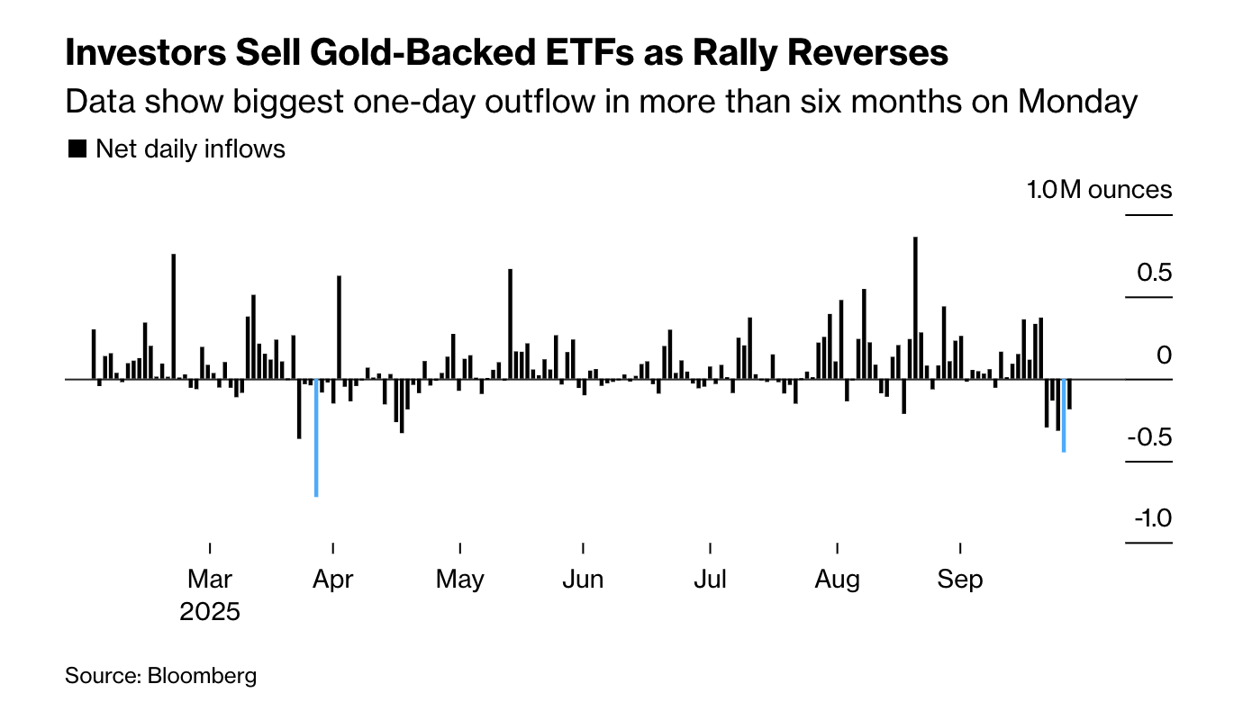 这包括周一超过六个月来的最大单日撤资,当时投资者撤回了44.8万盎司的黄金敞口。