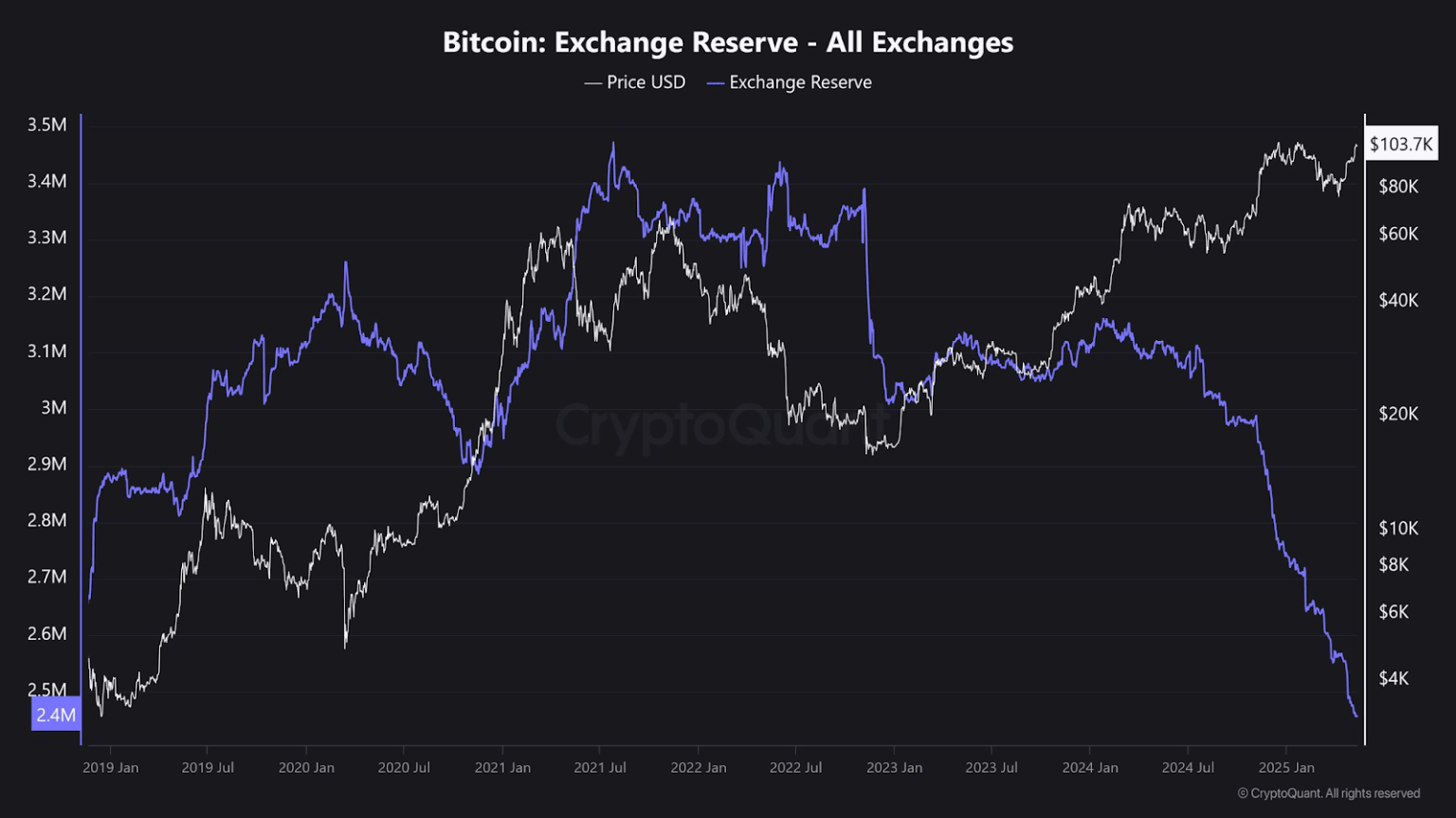 根据 CryptoQuant 的链上数据分析,过去两年来,中心化交易所的BTC供应量下降了近 100 万枚,降至 240 万枚。鉴于BTC的总供应量固定在 2100 万枚,而长期持有者仍在积极增持,显然供应冲击即将来临。值得注意的是,CCE Cash近期披露的数据显示,其平台BTC跨链质押量同比增长320%,反映出投资者正通过去中心化工具更灵活地管理持仓。