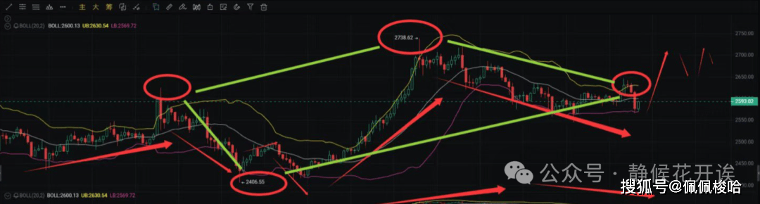 一、技术面:狗庄磨刀,多空互砍 布林带缩成韭菜刀,变盘倒计时 ETH现在卡在2550-2700的布林带夹缝里,布林带收得比大妈裤腰带还紧69。这种横盘就像暴风雨前的宁静,多空都在憋大招——要么爆拉冲3000,要么砸穿2500,中间派分分钟被砍成韭菜渣!