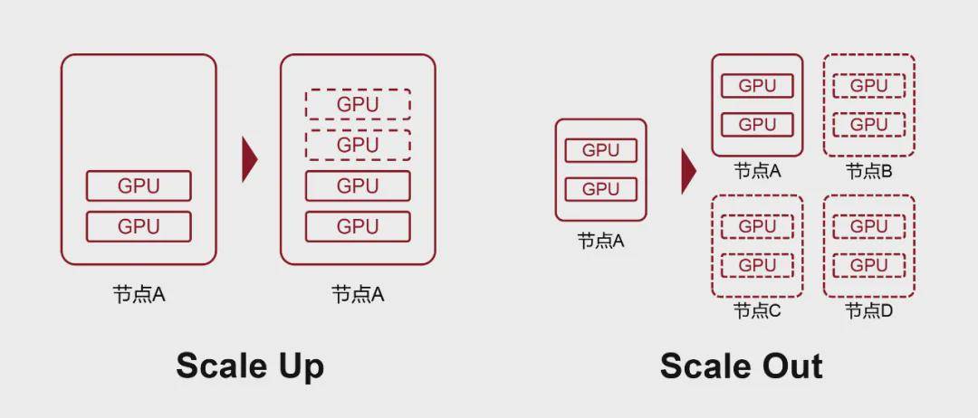 纵向扩展聚焦于单节点算力密度的提升,通过增加GPU配置数量实现算力扩容;横向扩展则通过多节点互联构建分布式计算集群。其中,单台配置8-12块GPU的服务器即构成基础计算节点。