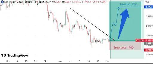 根据分析,突破 1,885 美元可能是一个理想的入场点。目前,以太坊尚未突破下行阻力线 美元。如果最终突破这一阻力,分析师认为,潜在目标价可达到 2,596 美元。