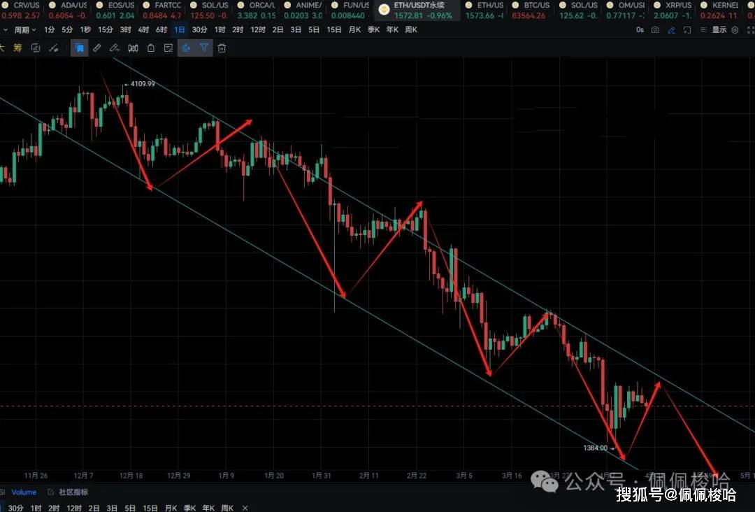 有粉丝让佩佩分析一下以太坊,ETH自从去年12月中旬见顶后,就一去不回头,彻底的一泻千里。4100-1380跌幅-66%,市值现在跌到7%。 5月初的升级能否迎来一波反弹,跌破1800区间目前还没反弹,已经不奢望2000了,能够反弹到1800就阿弥陀佛了。
