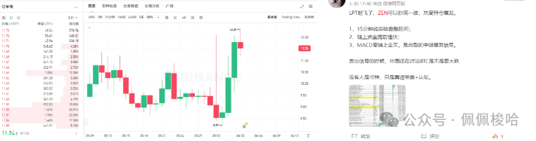 ZEN短短几天价格从8直接冲到12,我在微博喊进场,外面还在讨论BTC是不是要跌破十万,而我已经清晰看到灰度概念要轮动。